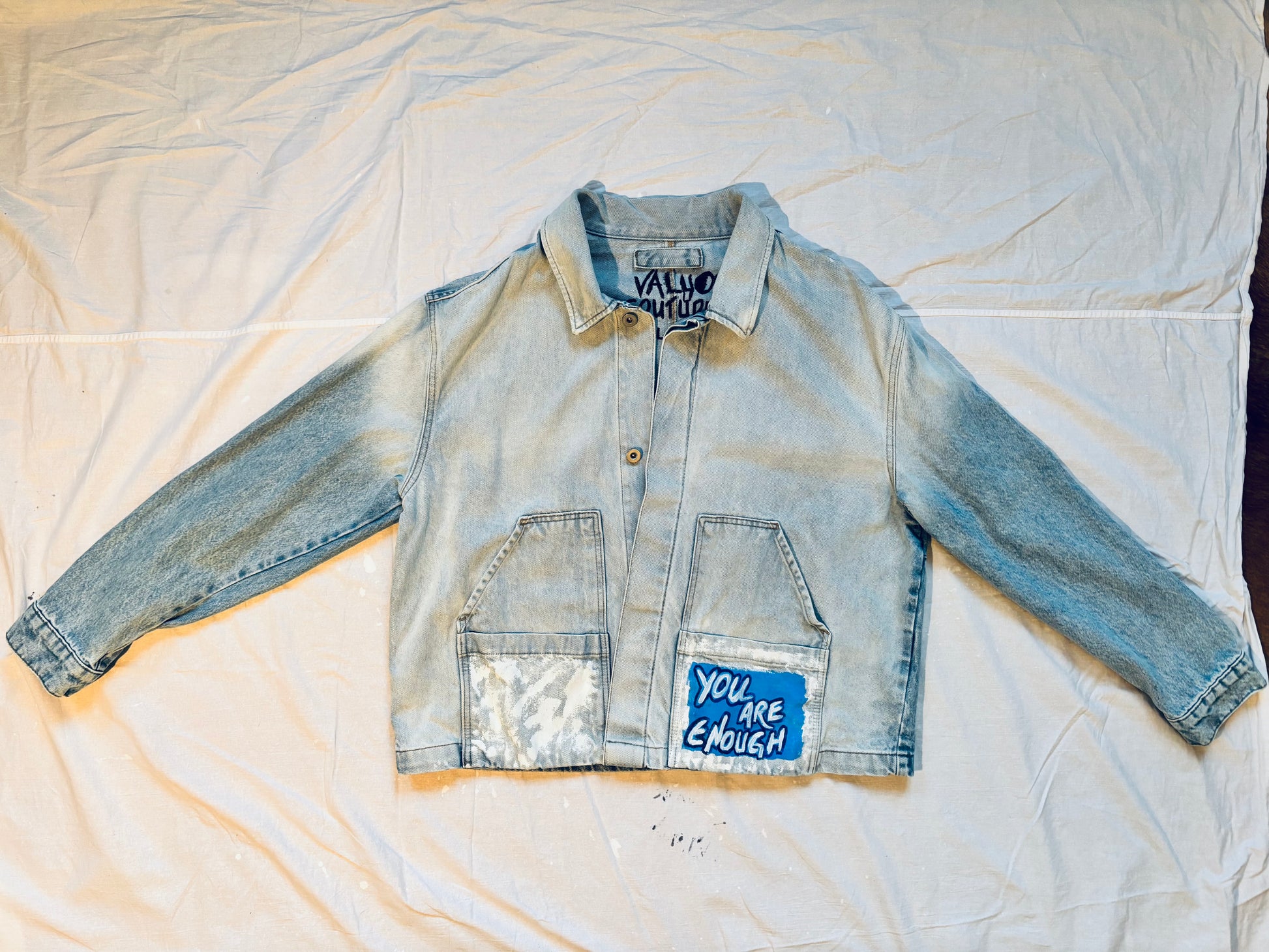Ein handbemaltes Unikat aus upcyceltem Denim – kraftvoll, modern, einzigartig.